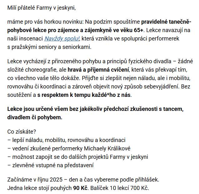 Tanečně pohybové lekce s Farmou v jeskyni