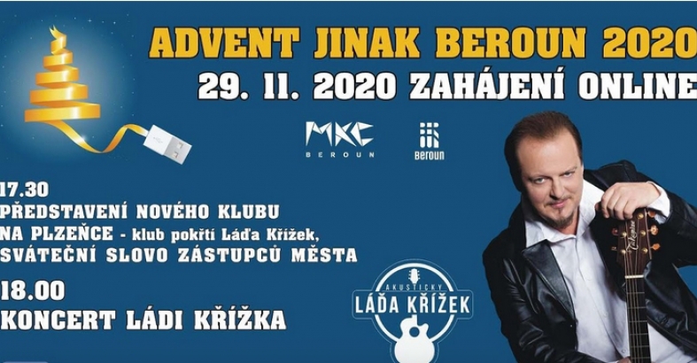 Letošní berounský advent začal kvůli pandemii koronaviru nejen pro Berouňáky jinak, než byli zvyklí. Jeho zahajovací koncert v neděli 29. listopadu musel být z Husova náměstí přesunut do ,virtuálního´ světa. Rocker Láďa Křížek tak vystoupil v objektu KD Plzeňka Beroun, konkrétně v jeho zadním traktu, v právě otevřeném klubu Kotelna“, který před začátkem koncertu také pokřtil.