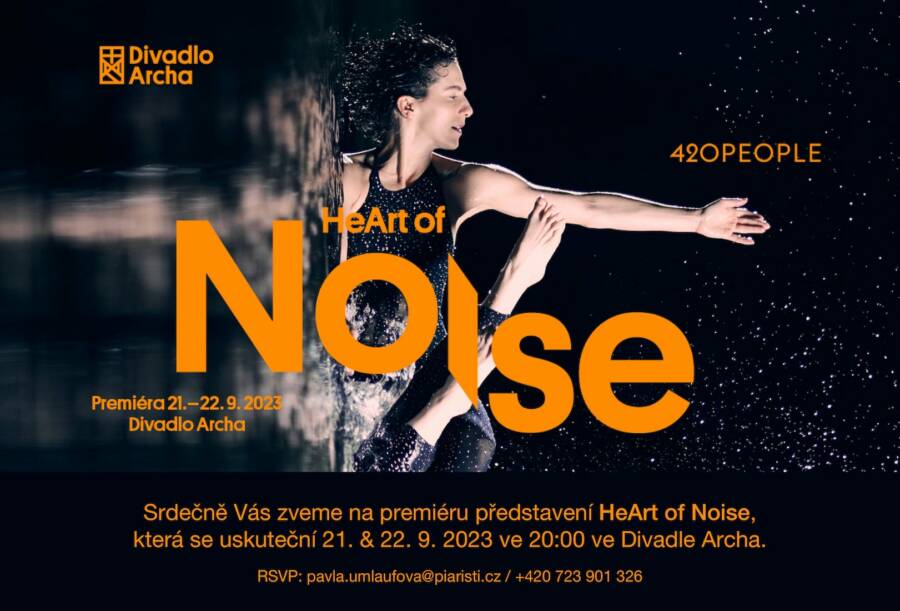 Taneční soubor současného tance 420PEOPLE letošní sezónu oslaví patnáct let na scéně. Kromě průřezu toho nejlepšího ze své tvorby si pro diváky připravil i úplnou novinku. Taneční show s názvem HeArt of Noise v choreografii Sylvy Šafkové uvede 21. a 22. září jako poslední premiéru na prknech končícího Divadla Archa. Scénografie a kostýmů se ujal Marek Cpin, který jeviště divadla proměnil ve vodní hladinu. Inscenace inspirovaná různými druhy hluků a zvuků ideově navazuje na manifest futuristů „Art of Noise“. Přijďte objevovat nové možnosti zvukového prožitku v interakci špičkových tanečníků s hudebníkem Tomášem Reindlem. Naživo uslyšíte také ikonický nástroj futuristů intonarumori.
