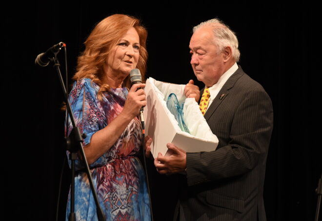 V letošním roce si v sobotu, 2. října, v malebném prostředí Divadla Karla Hackera, cenu převzala herečka Simona Stašová.