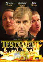 Vladimír Hrabal uprostřed plakátu a obalu DVD filmu „Testament“