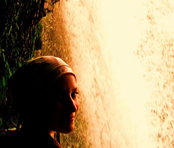 Napadá mě, že bych ze všeho nejraději tancem vyjádřila duhu, která nad vodopádem září v nekonečném množství odrážejících se kapiček vody do slunce.