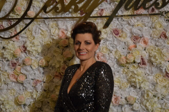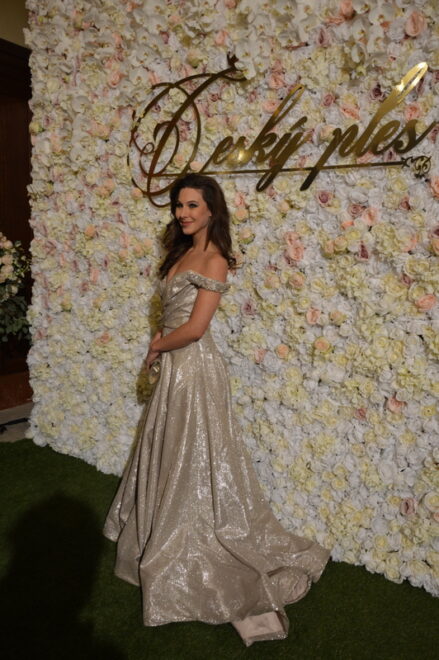 Pořadatelka plesu Kateřina Dušková byla překrásná, ale nemohla na začátku při vítání hostů skrýt lehkou nervozitu
