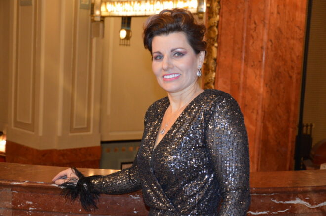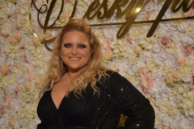 Operní pěvkyni Andreu Kalivodovou nemůžeme minout, její šarm a energie srší do dálky několika kilometrů. (Šaty od Tatiany Kovaříkové). Šperky z klenotnictví Halada za milion korun prý měla zapůjčené a měla o ně strach