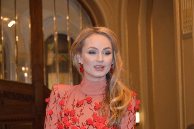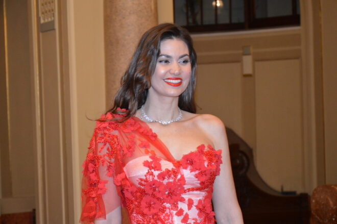 Herečka Sara Sandeva (šaty od Hermíny Khalaf Pogosyan)