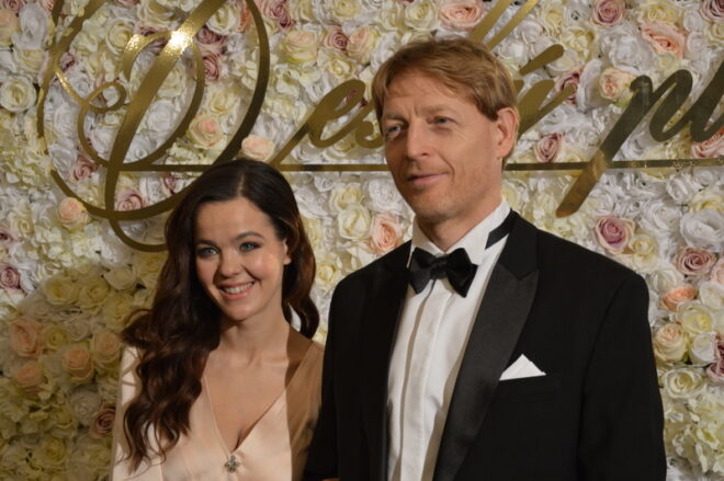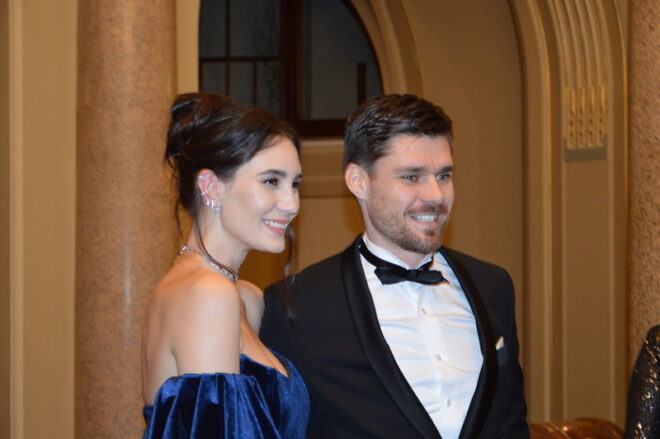 Tereza Pergnerová s partnerem Jiřím Chlebečkem (sama prý není plesový typ, ale tento ples má charitativní kontext a to ji těší)