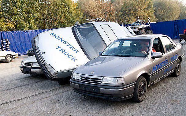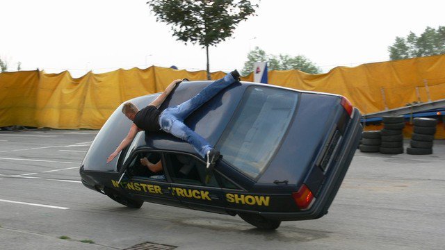 Kaskadér Tomáš Zelenay právě začíná 13.sezónu své show Monster Truck. Řvoucí motory aut, která se otočí na střechu, jezdí po dvou kolech, na střeše kaskadéři, kteří projedou ohněm či přeskočí z auta na auto. Dva monster trucky udělají z aut hromadu nepotřebného plechu.