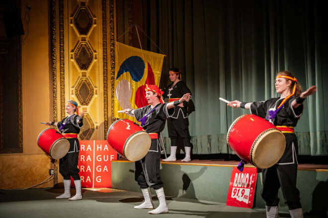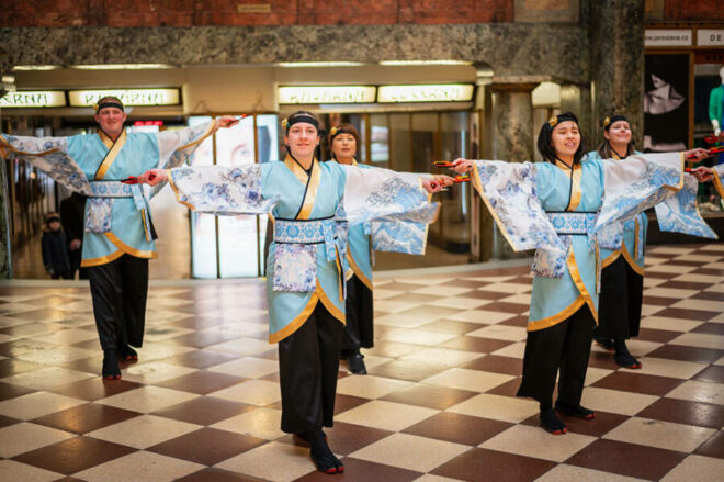 Workshopy kaligrafie, origami, Divadlo kjógen, tanec i bubeníci