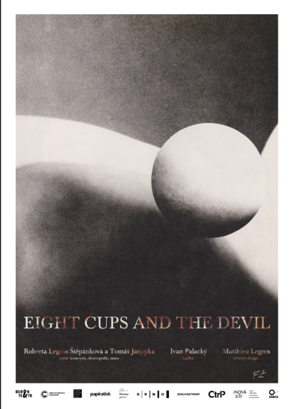 Osm pohárů a Ďábel je taneční divadlo vždy znova utvářené performéry improvizátory Robertou Legros Štěpánkovou a Tomášem Janypkou se zvukovým doprovodem Ivana Palackého a živým světelným designem Matthieu Legrose. Tyto tři vrstvy významů – tanec, zvuk a světlo – jsou na scéně v neustálé komunikaci a vznikají z přesné, ale spontánní sou-hry umělců v reálném čase.