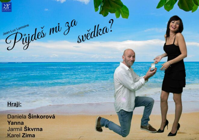 Divadlo Na Jezerce – Naprostí cizinci – Kristýna s Janem Řezníčkem, Ondrou Kavanem, Bárou Kodetovou, Petrem Vackem, Patricií Pagáčovou a Radkem Švecem