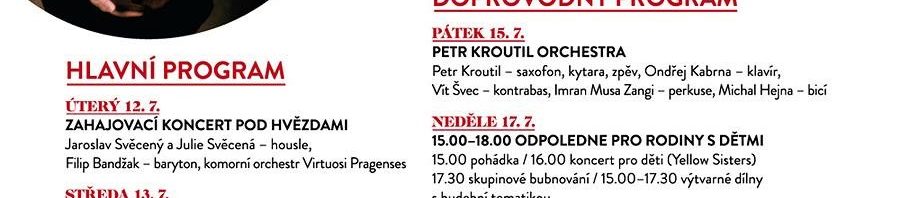Z letošních účinkujících se můžete těšit na tato jména: SISA SKLOVSKA, VLADIMÍR HRON, MARTIN FRANCE, TOMÁŠ SAVKA, PAVEL CALLTA, MARCELA LAIFEROVÁ, RADIM SCHWAB, PAVEL HOUFEK AD.
