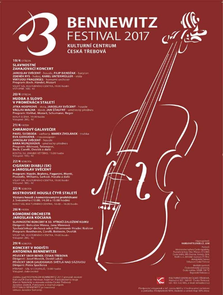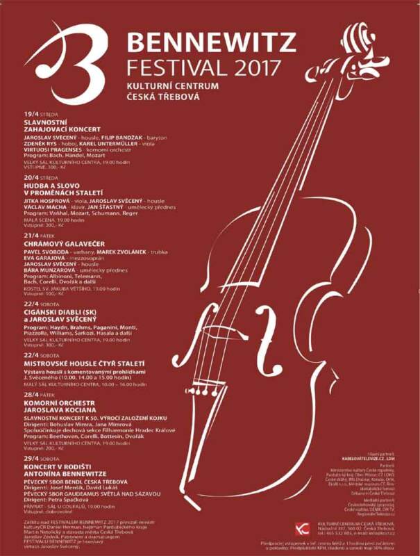 Již podevatenácté se v České Třebové uskuteční hudební festival, který nese jméno Přívratského rodáka, zakladatele Pražské konzervatoře, houslisty a pedagoga Antonína Bennewitze