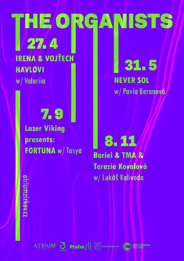 THE ORGANISTS je nová hudební série Atria na Žižkově, kde hlavní roli hrají varhany a komorní prostor tamního barokního kostela. Varhanní nástroj, obvykle spojovaný s klasickou chrámovou hudbou, vstupuje zde do zcela nového kontextu. Série se zakládá na autorských projektech, které oscilují mezi různými žánry, od ambientu přes pop až po temnější elektroniku. Každý z vybraných interpretů tak připravuje svébytný hudební projekt na míru prostoru. Sérii již ve čtvrtek 27. dubna zahájí Irena a Vojtěch Havlovi, dále se představí Never Sol, Lazer Viking s projektem FORTUNA a také Bariel, TMA a Terezie Kovalová.