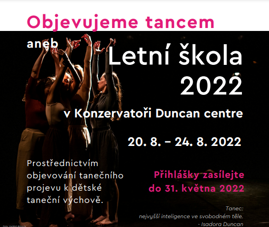 Přihlášky přijímáme do 31. května 2022, kapacita LŠ je omezená, proto doporučuje přihlásit se co nejdříve na e-mail: produkce@duncancentre.cz