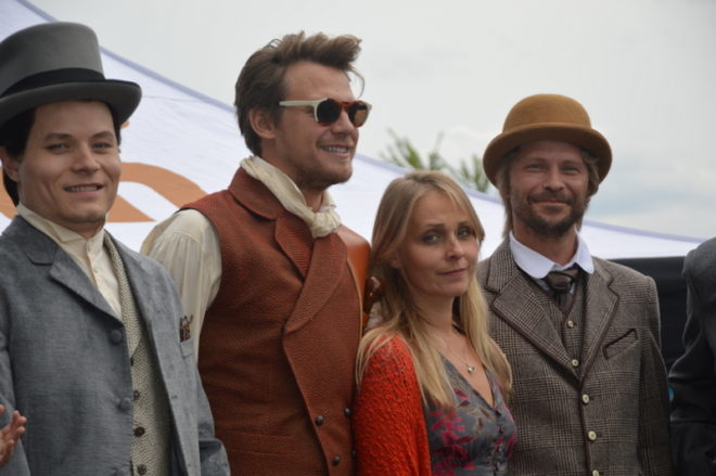 Zleva Lukáš Janota, Vojtěch Dyk, kostýmní výtvarnice Krystina Záveská a Marek Holý