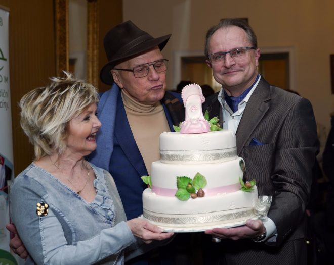 Popřát přišla také hlasatelská legenda Marie Tomsová, která naopak zpěvákovi popřála mimo jiné, ať je stále drobný.