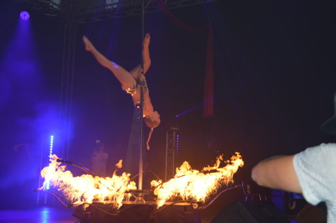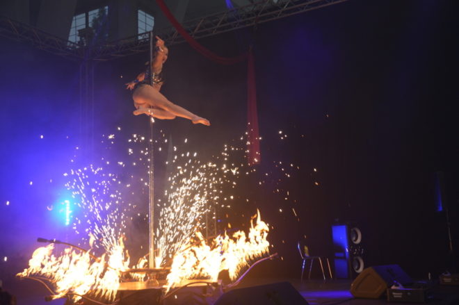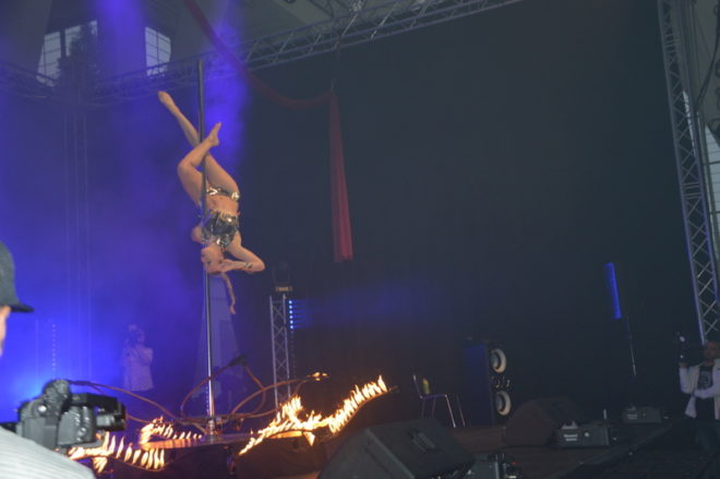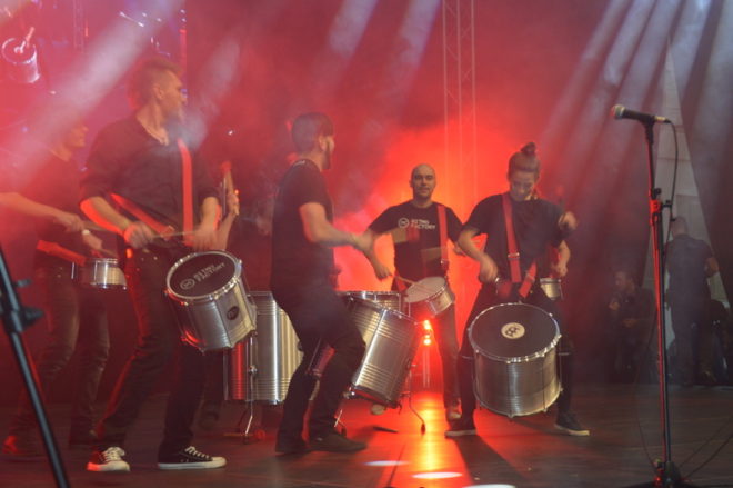 V nezkrotném rytmu bubnů se pokračovalo ve velkolepém odpolední snažení se o rekord, Fire show v podání Pyrotery mělo obrovský úspěch a CDO (Czech Dance organization) zpestřilo program o šálovou akrobacii.