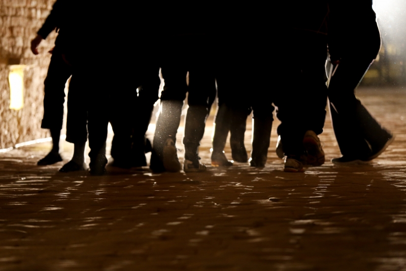 A jak to vše v praxi vypadalo? Jako bájní krysaři se nás – krátce po osmnácté – začali mladí umělci provázet tunelem dlouhým přesně 303 metry. Měli šédé hábity – evokující „stret-umění“, ale rovněž krysy z temnot. K tomu i šedé holínky.