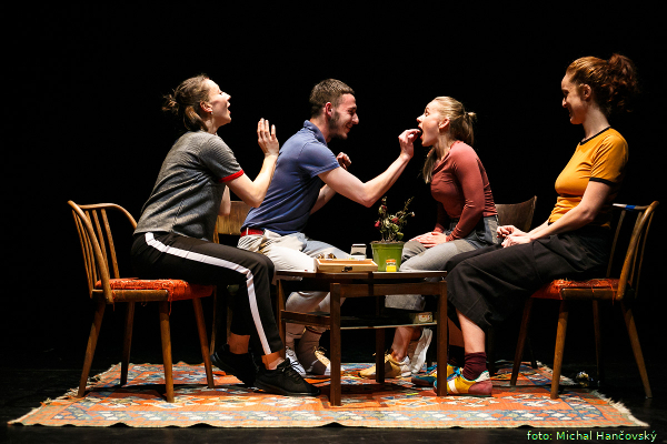 Co mne zaráželo? Možná méně hravých motivů, jakým bylo počáteční proměnění se čajového pytlíku v myšku… Nebo naopak? A zejména pak režijní neujasněnost, co ztvárnit pouze mimicky a co s reálnými rekvizitami. Zpočátku jsem tak chápal oddělení snů, plánů a reality. Což se v průběhu večera ukázalo mým omylem. Ale myslím si, že kupříkladu „mobilování“ s imaginárním mobilem by bylo určitě atraktivnější než s tím skutečným, trojrozměrným…