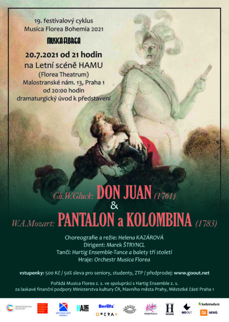 Tance a balety tří staletí připravují nový program. Jeho součástí bude premiérové nastudování tragického baletu Don Juan aneb Kamenná hostina Ch. W. Glucka a obnovená premiéra Mozartovy baletní pantomimy Pantalon a Kolombína. Vše uvedeno pod širým nebem na jevišti jedinečného Florea Theatrum 20. července 2021 na Letní scéně pražské HAMU.