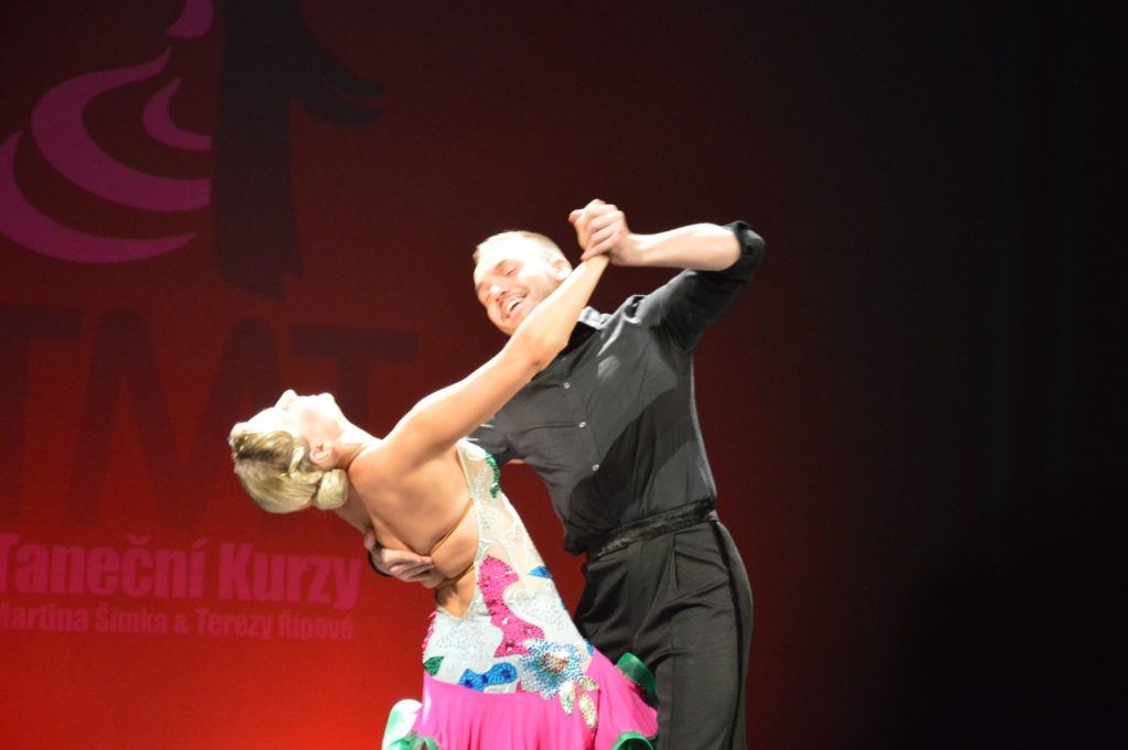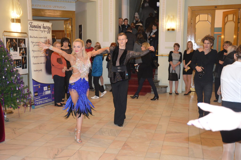 Při vstupu do divadla nás svým tanečním uměním okamžitě uchvátili Jiří Kejzar a Barbora Košková, jeden z předních tanečních párů ČR.