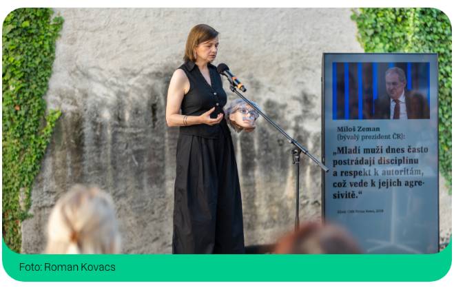 V červnu jsme ve Wortnerově domě v Českých Budějovicích odpremiérovali performativní přednášku Za muže, která měla formu experimentální garden party, přednášky a diskuse na téma politické radikalizace mladých mužů.