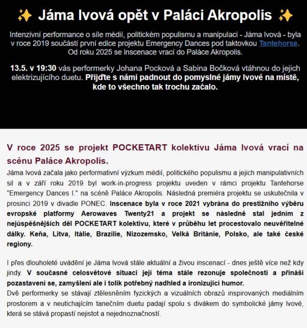 Nabízíme 3 místa pro performerstvo, novinářstvo i další zájemce, kteří se chtějí stát tichými svědky tohoto procesu.