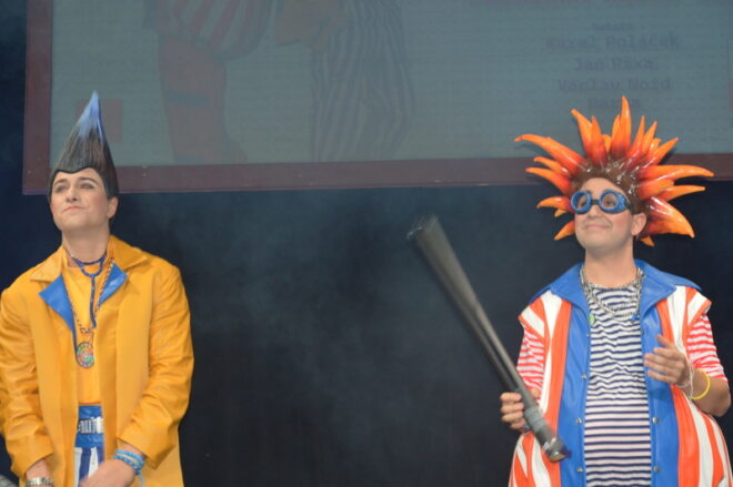 „Tak já doufám, že se neztotožní s mým vzezřením, protože tak, jak vypadám, mám asi 250 kilo, takže bych mohl jít do nového pořadu televize Nova, jak zhubnout! Ale jsme s takoví dva lumpové, rošťáci, možná se jim právě bude líbit a bude jim příjemné, jak budeme zlobit.“