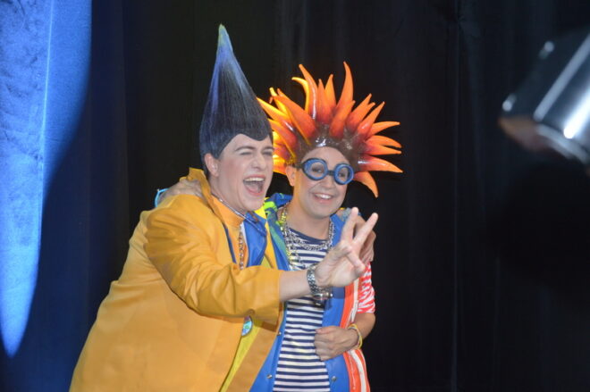 Přitažlivé pro diváka je i herecké obsazení, bratrskou dvojici s neodolatelnou komikou hrají Josef Fečo a Filip Hořejš, jejich mámu Halabábu Bára Štěpánová, popleteného řídícího učitele Denny Ratajský, Růžového krále a loupežníka Dušan Kolár. Představení je také plné dětí z muzikálového studia HD Karlín Múzy.