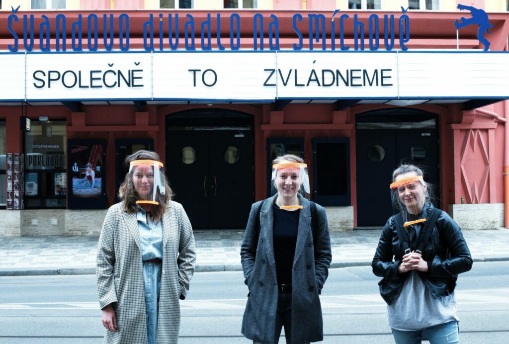 Členky souboru Švandova divadla Natálie Řehořová, Marie Štípková a Anna Stropnická na aktuálním snímku Aleny Hrbkové, pod současným sloganem Švandova divadla. Tento slogan se stal i tématem našeho titulního snímku.