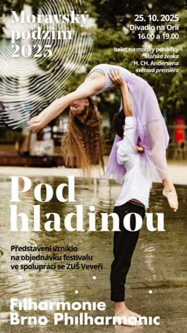 Pro letošní ročník festivalu Moravský podzim vzniklo zcela nové dílo – balet Pod hladinou. V čem je výjimečné? Jedná se o společné dílo brněnských autorů vytvořené na míru pro konkrétní taneční soubor a orchestr. Půjde o světovou premiéru! Libreto napsala Kateřina Křivánková, autorkou choreografie je Gabriela Hrabalová, hudbu složil Ondřej Kyas a scénu a kostýmy vytvořila Tereza Jančová. Pro mladší publikum je to příležitost seznámit se s baletem v živé a soudobé podobě.