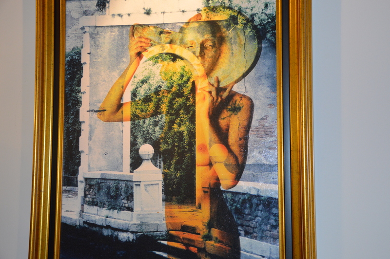 „Jsou zde   fotografie, které se nazývají  tzv. „sendviče“, nebo-li dvě fota  v jedné (spojení dvou diapozitivů). Podklad tvoří nádherné fragmenty benátské architektury, dalším komponentem, který je tam kompozičně vložen, jsou torza ženských  těl s benátskými maskami.“