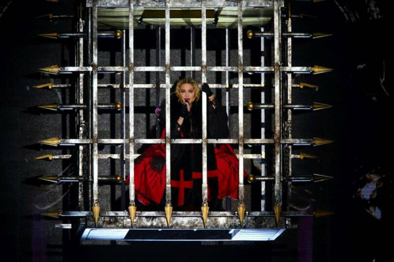V tom padá opona, Madonna v kleci se spouští k jevišti za doprovodu písně Iconic. Vojsko se svatými kříži pobíhá po scéně a obří obrazovka dotváří scénu. Vše odpuštěno! Madonna je tu!