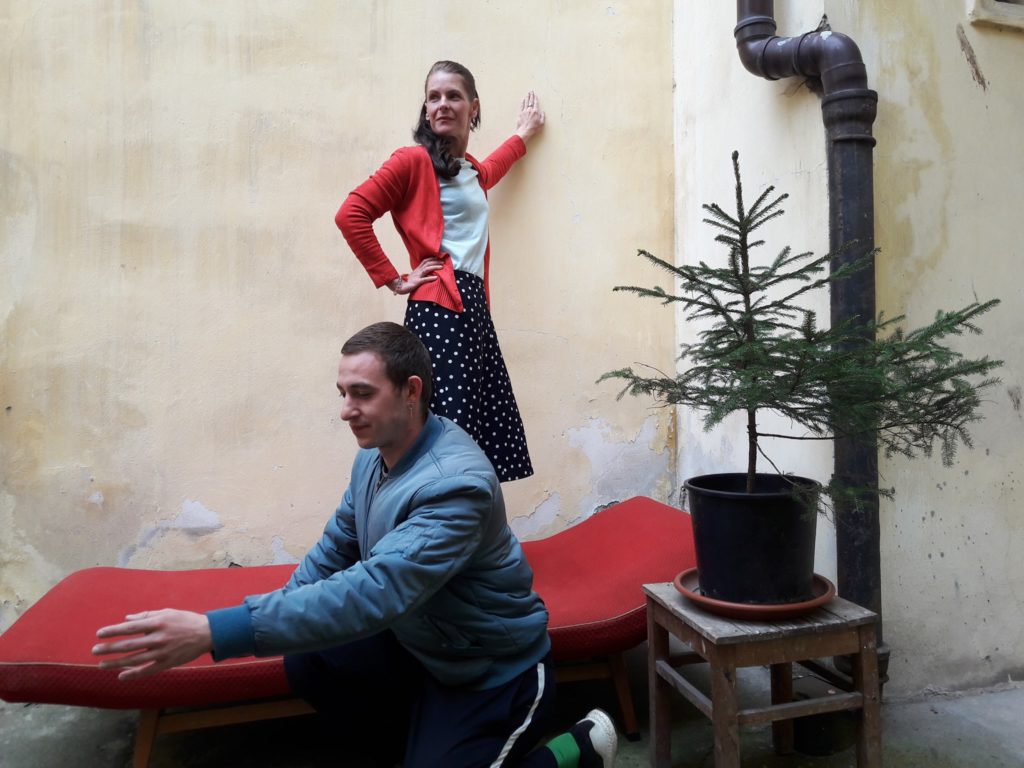 Opět Martin a Veronika během zkoušek – ta kytka v představení byla trochu jiná 🙂 , nikoli stromeček!