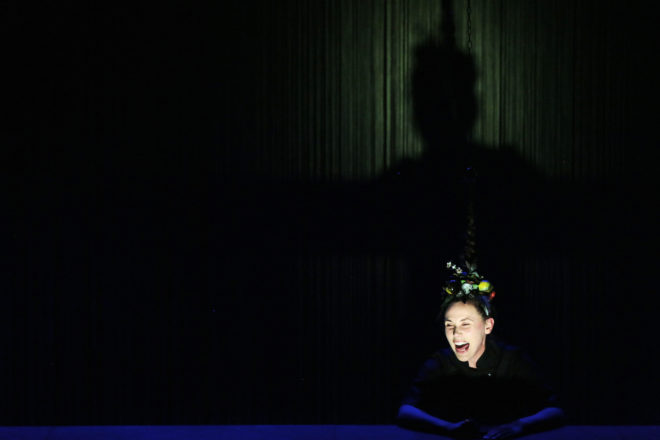 Umělkyně Flora Détraz pochází z baletního prostředí. Vystudovala literaturu a během své kariéry se setkala s řadou umělkyň a umělců, kteří zásadně  ovlivnili její práci. Jejím základním tématem je vztah mezi pohybem a hlasem. V rámci festivalu představila pražskému publiku  MUYTE MAKER. Čtyři performerky během představení zpívají, smějí se, tančí a kakofonně debatují.   Scéna samotná i kostýmy umělců jsou jistě zajímavé, měnící se osvětlení jaksi  samo „převl éká“ umělce. Nejsem si zcela jista, proč mají performerky na hlavách podivné ozdoby, ze kterých vede lano a celý obraz vytváří dojem, že postavy jsou loutky.  Kulisy vytváří také až jakýsi středověký obraz. Některé okamžiky sice přivádí diváky k bujarému veselí, přesto se domnívám, že nesedí-li v publiku opravdový odborník na hlas a naslouchání, nemusí všemu plně porozumět.
