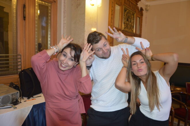 „Šimonovi jde vše, něco rychleji, na něco potřebujeme a budeme potřebovat více času.. ale nedovolila bych si soudit kohokoliv, kdo najde odvahu a v podstatě s minimem tréninku předvede vyprodanému divadlu taneční show s variacemi, ke kterým se my tanečníci dostáváme klidně roky. Každopádně, co musím ‚vypíchnout‘, jsou různé ‚zvedačky“ a akrobatické prvky, které chce Šimon do show zařazovat. Je opravdu šikovný a silný a já si připadám, že mám asi 30 kilo, jak je schopný mě lehce zvednout. S čím trošku bojujeme, je náš standardní tanec, u kterého mi Šimon řekl, že si připadá, jak hopsající poník.. 😀 Tak snad se nám to společně nakonec podaří trošku elegantněji..“