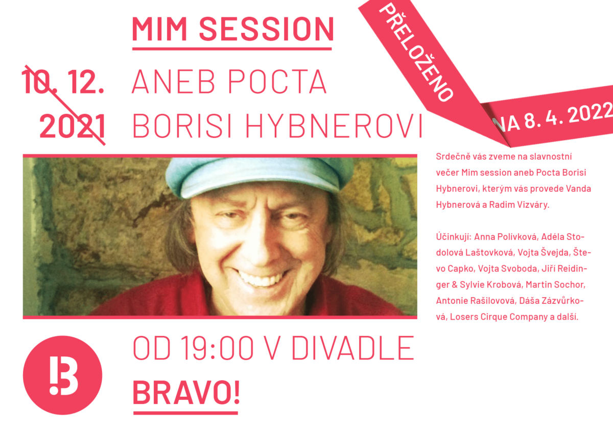 8.dubna proběhl v divadle BRAVO!poměrně dlouhý večer, který připomněl velikána české pantomimy Borise Hybnera. Stalo se tak u příležitosti jeho nedožitých osmdesátin (letos by oslavil své 81. narozeniny)