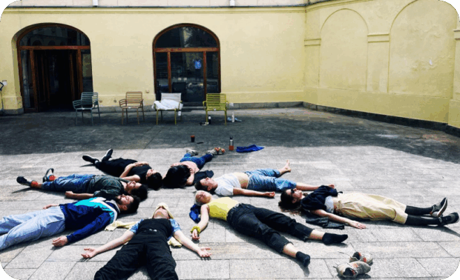 Děkujeme také za několik fantastických Tantelab workshopů. První z nich vedla Eliška Kubartová a Tomáš Kubart na téma Bolest a utrpení jako téma a médium v performačních uměních, kde společně skrze tělesnou zkušenost představili mimo jiné vídeňský akcionismus.